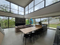 Sala ampla, com iluminação planejada e dois ambientes integrados